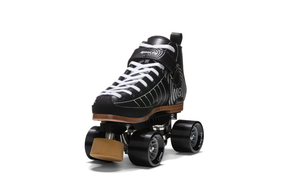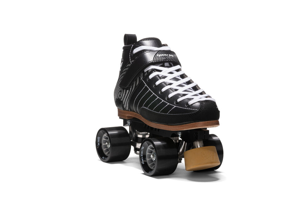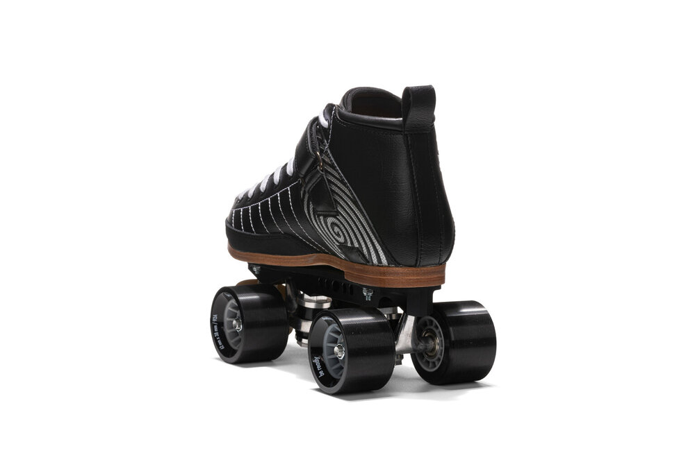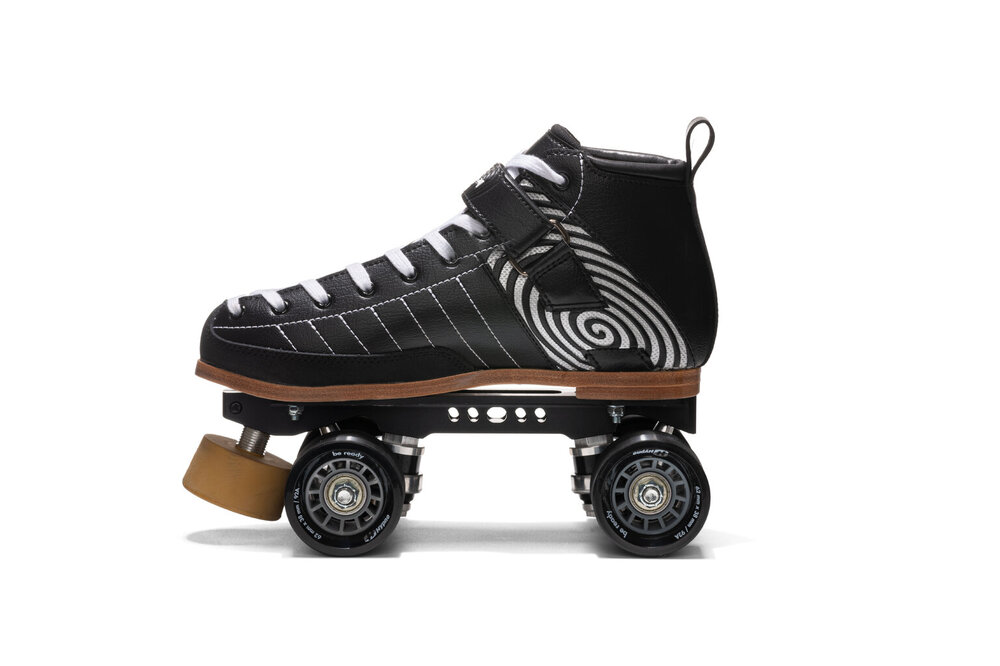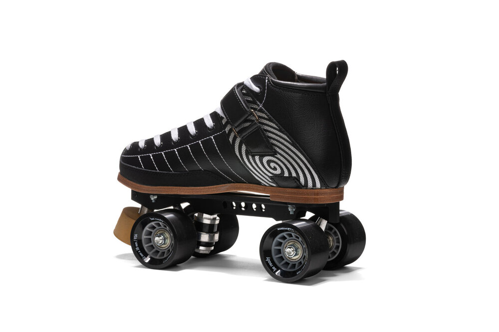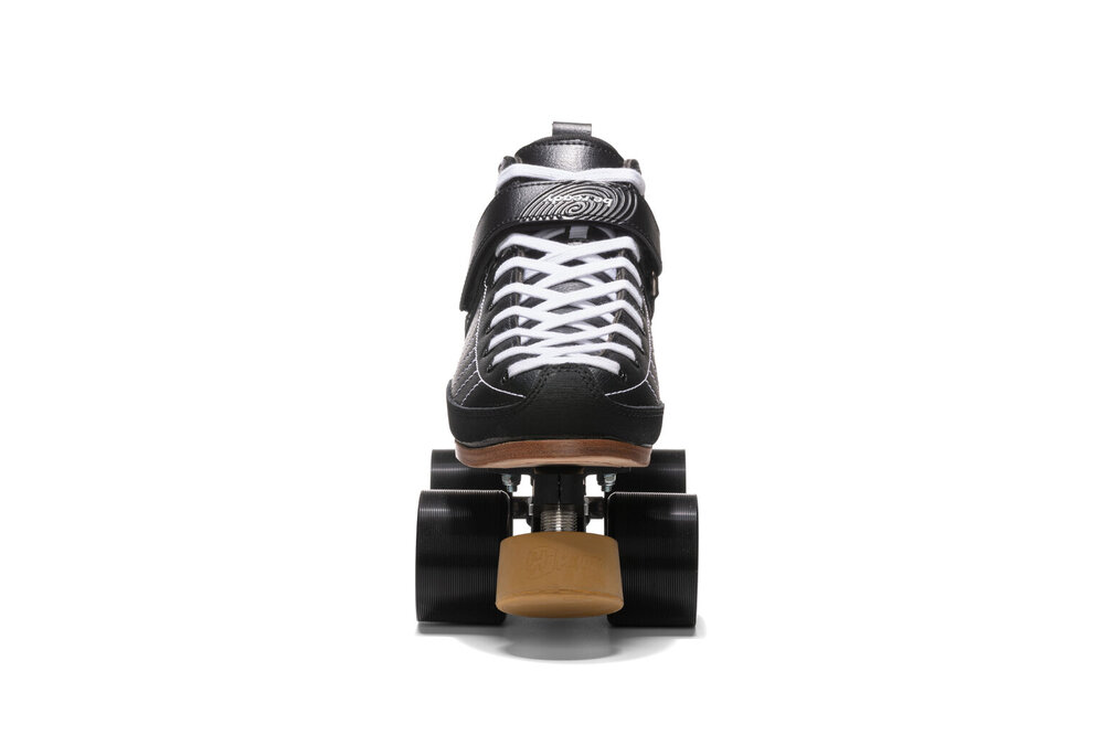 Nyx skates are suitable for intermediate or beginner skaters seeking a complete skate that offers superior performance, durability and comfort. No detail has been left to chance: internal reinforcements to those areas that receive greatest stress guarantee superior reactivity. Toe guard in abrasion-resistant bycast technical fabric. Reinforced seams on the sides for greater support and a strap that guarantees a dialled-in fit and perfect tailoring to any foot type and sole width. The set up features a cnc-machined extruded aluminium plate mounted with 92A indoor wheels, providing a perfect compromise for both wooden and concrete floors. Fitted with abec7 bearings and 5.5 cm diameter toe stop, for greater grip and control. The ideal skate for those seeking to take their skating and stunting skills to the next level.TECHNICAL DETAILS